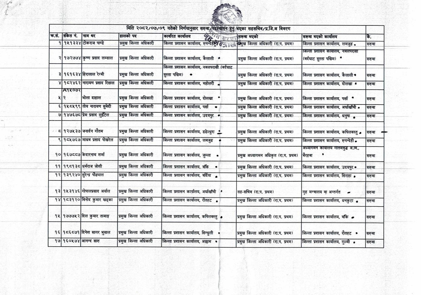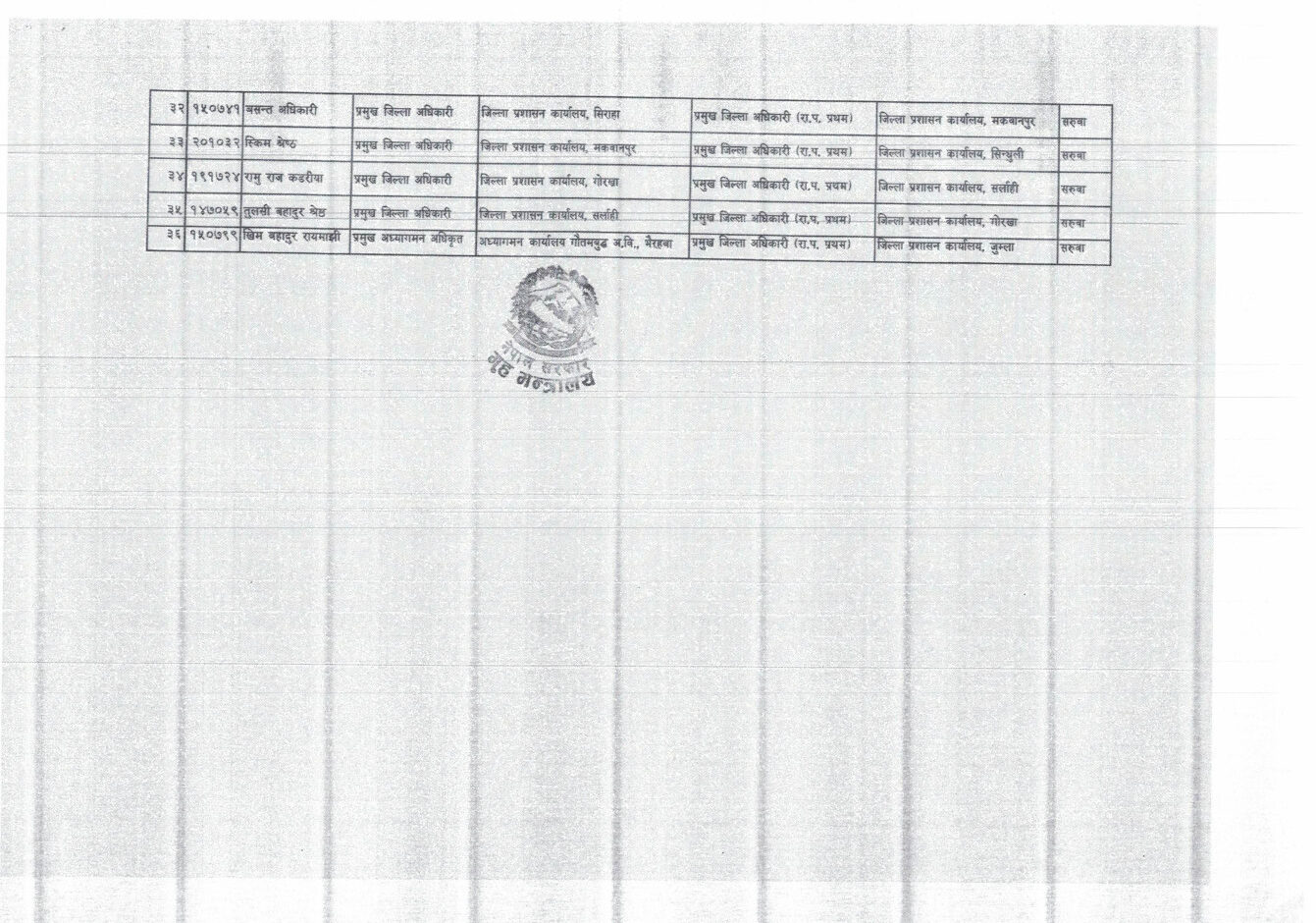 ३६ प्रमुख जिल्ला अधिकारी र सहसचिवको सरुवा